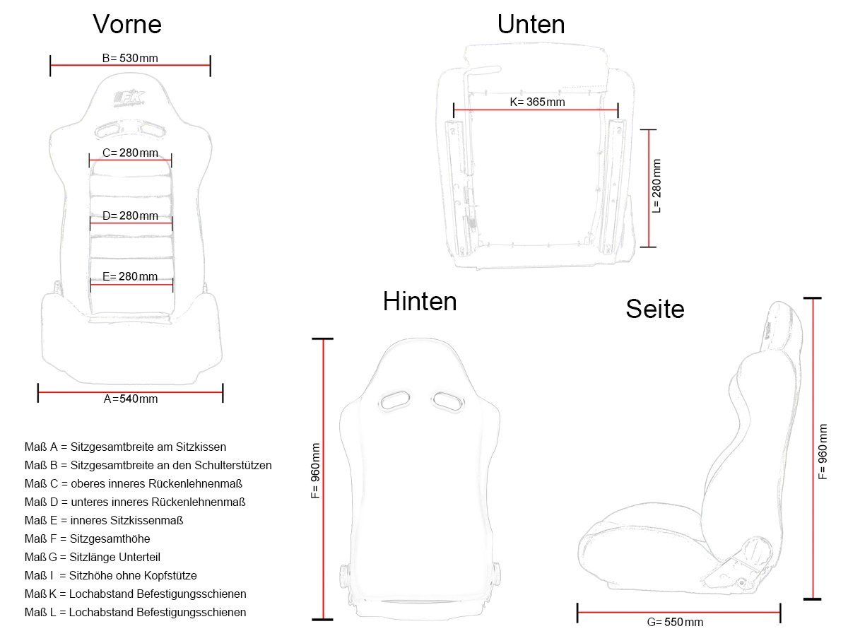 Farbe: schwarz Carbon LookBezug: KunstlederHalbschalensitze, Set aus 1 linker + 1 rechter Sitzinkl. Laufschienenohne Teilegutachten/StVZO-ZulassungRückenlehne manuell verstellbarmit Klappmechanismusfür echtes RennsportfeelingFarbe: schwarz Carbon LookBezug: KunstlederHalbschalensitze, Set aus 1 linker + 1 rechter Sitzinkl. Laufschienenohne Teilegutachten/StVZO-ZulassungRückenlehne manuell verstellbarmit Klappmechanismusfür echtes Rennsportfeeling