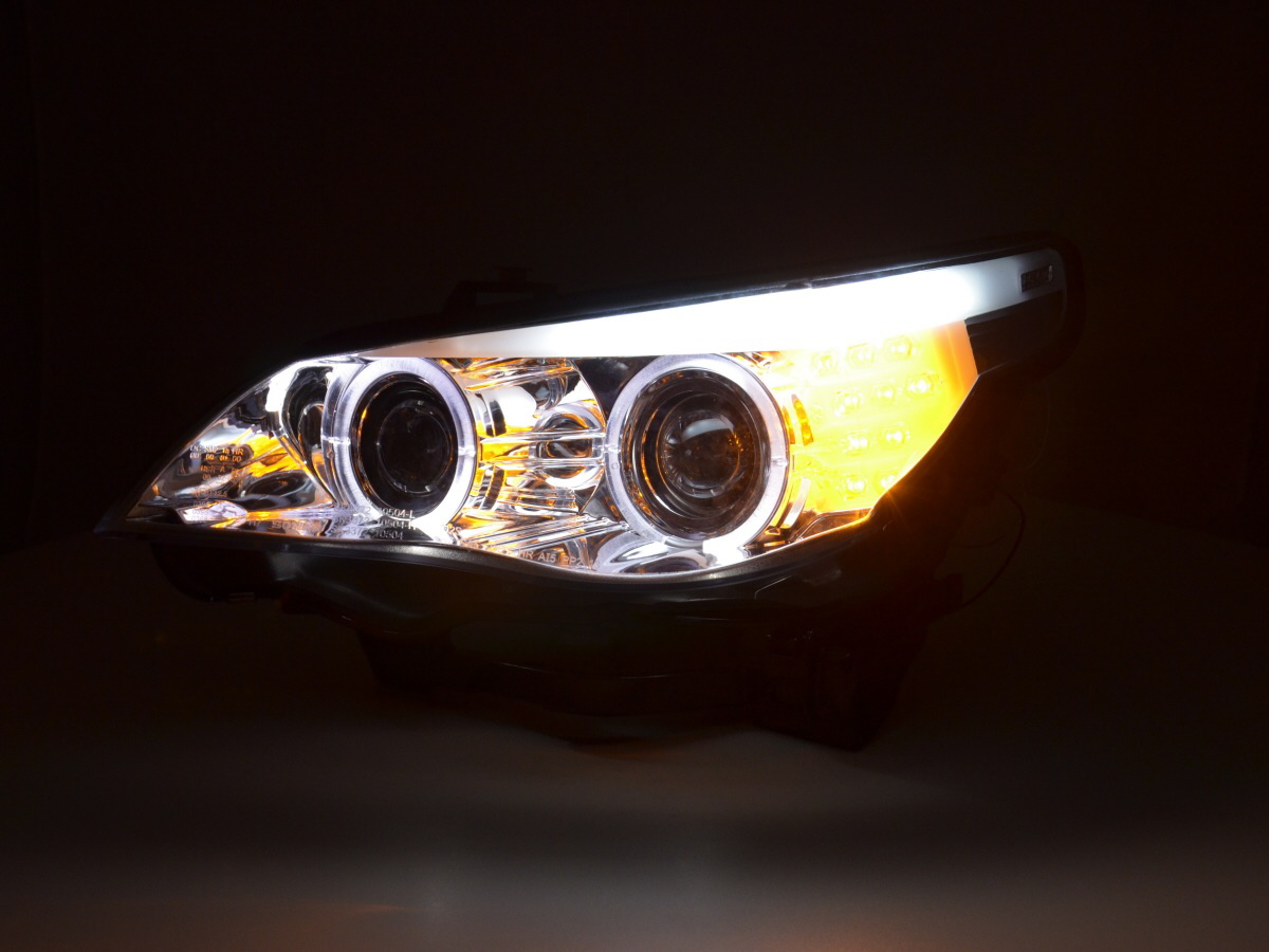 für BMW 5er E60/E61 für Baujahr 2003 bis 2008 Farbe: chrom LED angel eyes mit E Prüfzeichen mit elektr. Leuchtweitenregulierung inkl. Stellmotor (typ V) links + rechts (Set) Design Scheinwerferfür BMW 5er E60/E61 für Baujahr 2003 bis 2008 Farbe: chrom LED angel eyes mit E Prüfzeichen mit elektr. Leuchtweitenregulierung inkl. Stellmotor (typ V) links + rechts (Set) Design Scheinwerfer