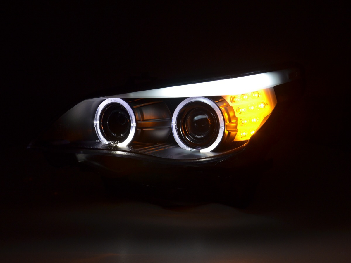 für BMW 5er E60/E61 für Baujahr 2003 bis 2008 Farbe: schwarz LED-Angel Eyes Typ mit E Prüfzeichen mit elektr. Leuchtweitenregulierung inkl. Stellmotor (V) links + rechts (Set) Design Scheinwerferfür BMW 5er E60/E61 für Baujahr 2003 bis 2008 Farbe: schwarz LED-Angel Eyes Typ mit E Prüfzeichen mit elektr. Leuchtweitenregulierung inkl. Stellmotor (V) links + rechts (Set) Design Scheinwerfer