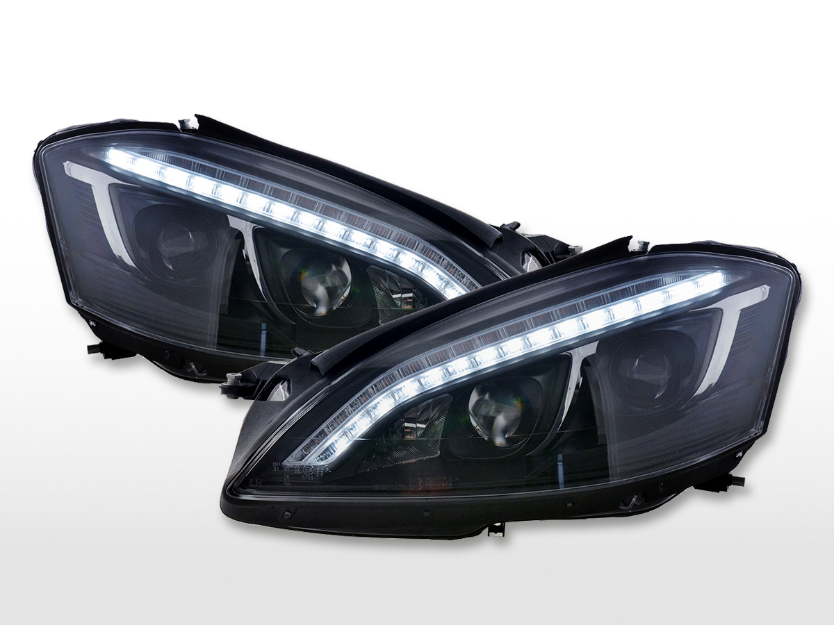 Daylight Scheinwerfer mit LED Standlicht mit LED Blinker TFL optik S-Klasse (221) Baujahr 2005 bis 2009 Farbe: schwarz mit E Prüfzeichen (eintragungsfrei) links + rechts (Set) mit elektr. Leuchtweitenregulierung ohne Stellmotor original Motor muss übernommen werdenDaylight Scheinwerfer mit LED Standlicht mit LED Blinker TFL optik S-Klasse (221) Baujahr 2005 bis 2009 Farbe: schwarz mit E Prüfzeichen (eintragungsfrei) links + rechts (Set) mit elektr. Leuchtweitenregulierung ohne Stellmotor original Motor muss übernommen werden