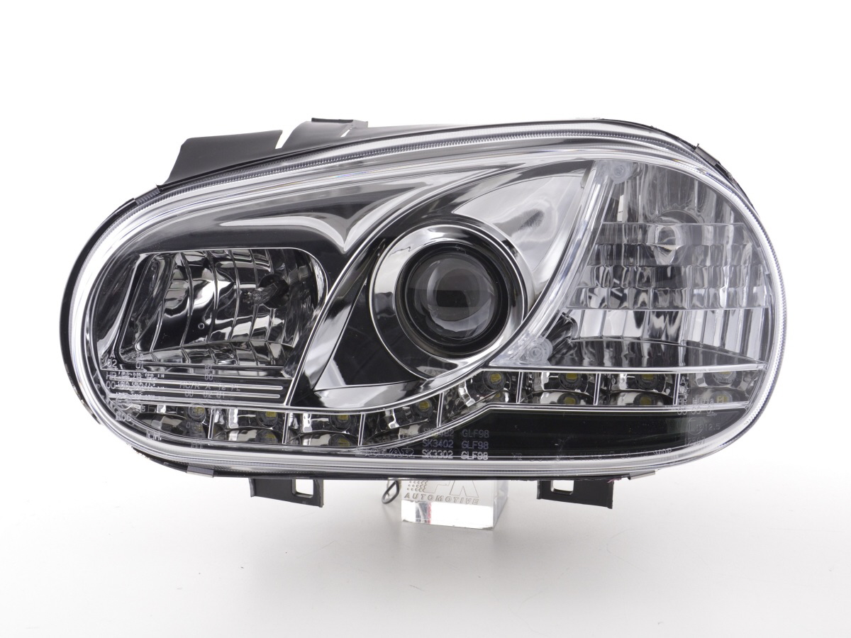 für VW Golf 4für Baujahr: 1998 bis 2003mit E Prüfzeichen (eintragungsfrei)mit elektr. Leuchtweitenregulierung ohne StellmotorFarbe: chromfür Rechtslenkermit integriertem BlinkerDaylight Scheinwerfer mit LED Standlichtfür VW Golf 4für Baujahr: 1998 bis 2003mit E Prüfzeichen (eintragungsfrei)mit elektr. Leuchtweitenregulierung ohne StellmotorFarbe: chromfür Rechtslenkermit integriertem BlinkerDaylight Scheinwerfer mit LED Standlicht