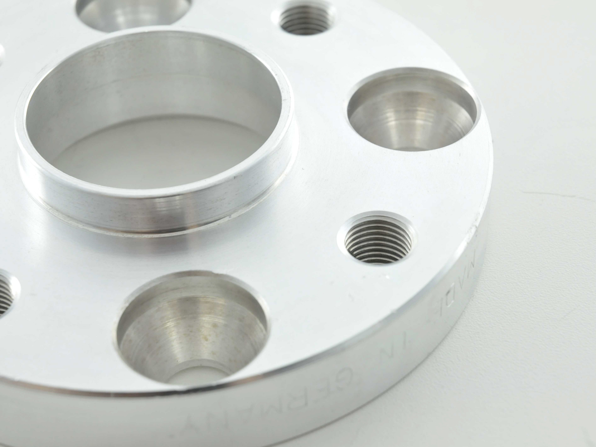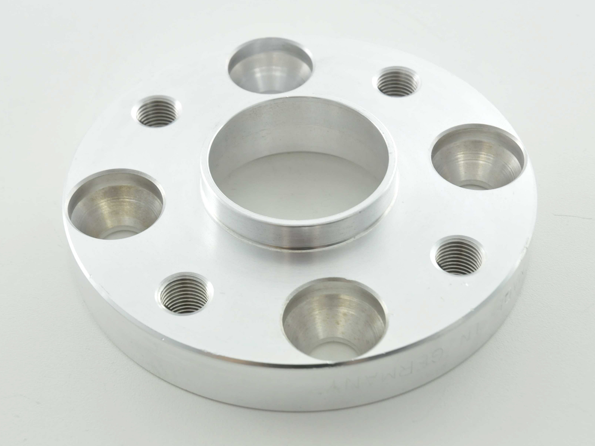 Die Spurverbreiterungen werden in Verbindung mit längeren Radschrauben an die Original Fahrzeugaufnahme befestigt. Die Montage ist denkbar einfach. Einfach Rad runter, Spurverbreiterung drauf und dann mittels längeren Radschrauben die Felge auf die Radnabe wieder montieren. Die Spurverbreiterungen werden auf modernsten CNC gesteuerten Säge, – Dreh und Fräszentren produziert. Längere Radschrauben bitte gleich mitbestellen! FK bietet 4 verschiedene Spurverbreiterungstypen anSystem A ohne Zentrierung , diese Spurverbreiterung ist eine Art Scheibe auf die das Lochbild Ihres Fahrzeuges integriert ist. Weiter ist der Nabendurchmesser berücksichtigt, Bei diesem Fahrzeugtyp ist wichtig das die Seriennabe eine längere Zentrierung aufweist wie die Spurverbreiterung, so das die Felge über die Seriennarbe noch mit zentriert wird. Sollte die Seriennarbe nicht die Felge zentrieren, so muss die Felge über die Radschrauben / Radbolzen zentriert werden. Das bedeutet das die Schrauben im entlasteten Fahrzeug auf Nenndrehmoment angezogen werden! Befestigungsschrauben nicht im Lieferumfang enthalten.System A mit Zentrierung , diese Spurverbreiterung weist eine Zentrierung auf über die dann die Felgen zentriert wird. Dadurch wird ein Rundlauf auch bei hohen Geschwindigkeiten gewährleistet. Bevor Sie eine Spurverbreiterung ohne Zentrierung montieren oder bestellen, ziehen Sie wenn es technisch möglich ist immer eine Spurverbreiterung mit Zentrierung vor. Jedoch beachten Sie die Serienhöhe der Nabe. Befestigungsschrauben nicht im Lieferumfang enthalten.System B mit Zentrierung ,bei diesem System wird die Spurverbreiterung mit den mitgelieferten Kurzkopfschrauben direkt an die Radnabe befestigt. Anschließend wird die Felge mittels den Originalen Felgenschrauben auf der Spurverbreiterung befestigt. Wichtig ist das Sie maximal 5-7 Schraubenumdrehungen in der Spurverbreiterung befestigt sind! Dies gilt es vor der Montage zu der Felgen mit der Spurverbreiterung zu prüfen.System B+ mit Zentrierung ,bei diesem System wird die Spurverbreiterung mit den mitgelieferten Kurzkopfschrauben direkt an die Radnabe befestigt. Anschließend wird die Felge mittels den Originalen Felgenschrauben auf der Spurverbreiterung befestigt. Die Schraubenbefestigung wird durch eingepresste Stahlbuchen zu 100% gewährleistet! Wichtig ist das Sie maximal 5-7 Schraubenumdrehungen in der Spurverbreiterung befestigt sind! Dies gilt es vor der Montage zu der Felgen mit der Spurverbreiterung zu prüfen.Weitere Ausführungsdetails: Material bestehend aus Hochfestigkeitsaluminium das auch im Flugzeugbau eingesetzt wird.Rennstrecken und Festigkeitserprobt und vom TÜV nachgewiesen.Fahrzeugspezifische Spurverbreiterung und keine universal SpurverbreiterungAngaben der Breite immer pro Achse, das heißt Scheibendicke multipliziert mal zweieinfache Montage binnen Minuten toller Effektwenn die Spurverbreiterung mit Zulassung ist wird das TÜV Gutachten mit geliefertMenge immer zwei Scheiben je Setes können Vorderachse und Hinterachse verschiedene Breiten montiert werdenPlan-Parallelität Differenz unter 0,1mmLieferumfang:1 Satz Spurverbreiterungen ( links + rechts für zwei Felgen )